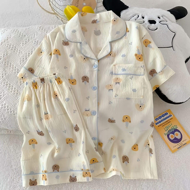 Zweiteiliges Pyjama-Set mit Bärenwelpen-Print