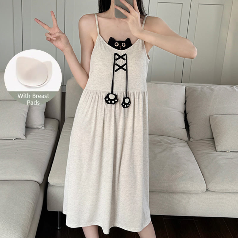 Pyjama-Kleid mit Katzenpfotenabdruck und Stilleinlagen