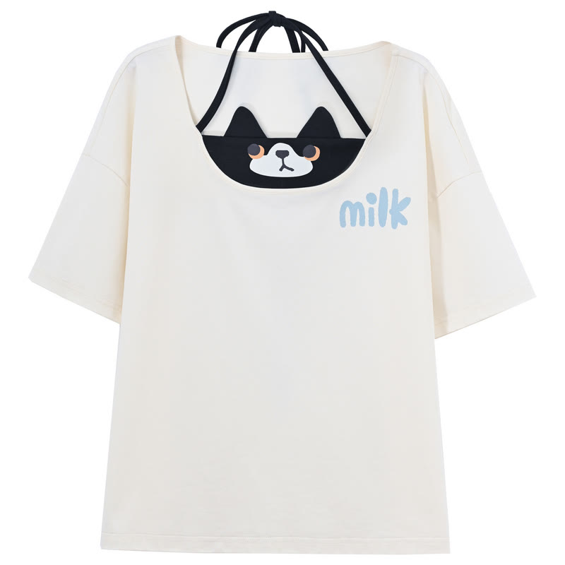 Angel Kitty Modakawa T-Shirt mit Buchstaben-Print