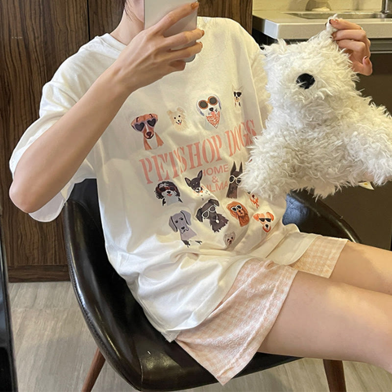 Zweiteiliges Pyjama-Set mit Welpen-Karomuster und Buchstaben-Print