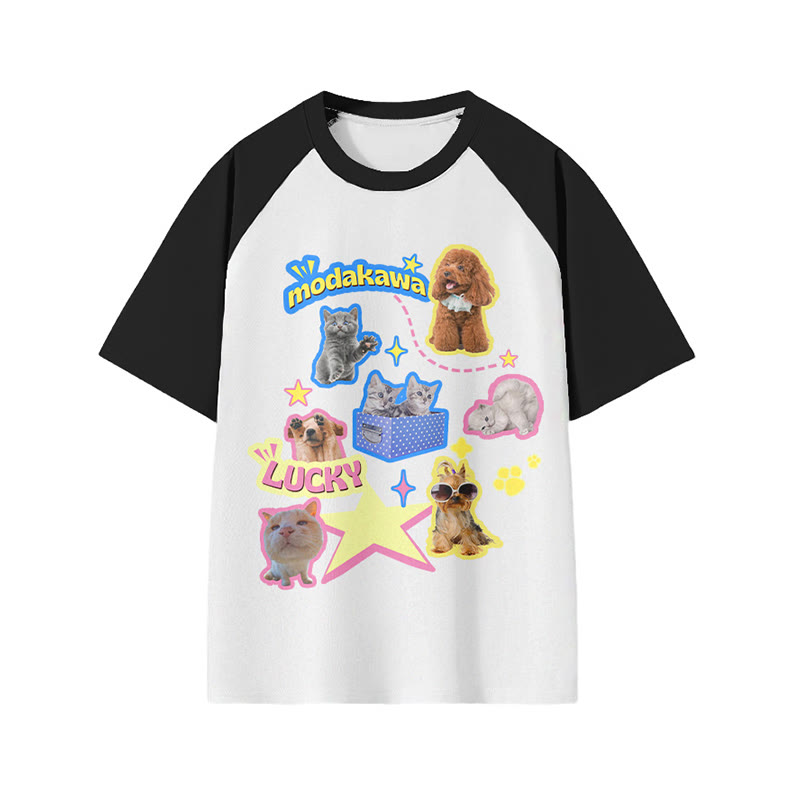LUCKY Letter Kitty Puppy Print 100 % Baumwolle Modakawa T-Shirt