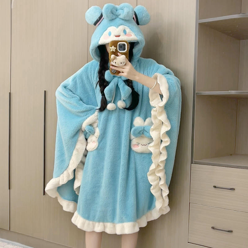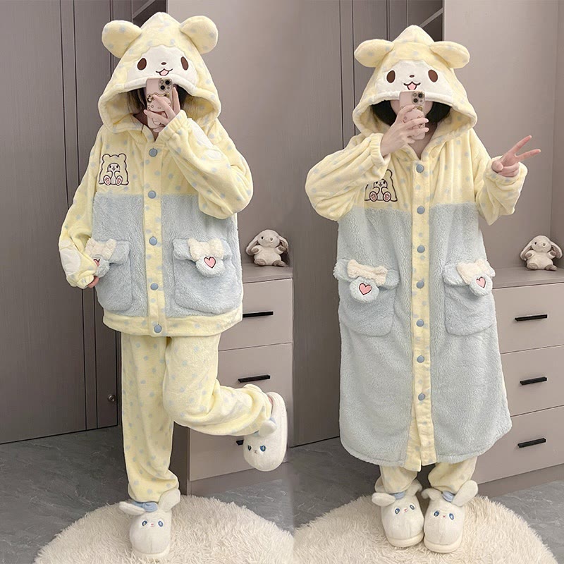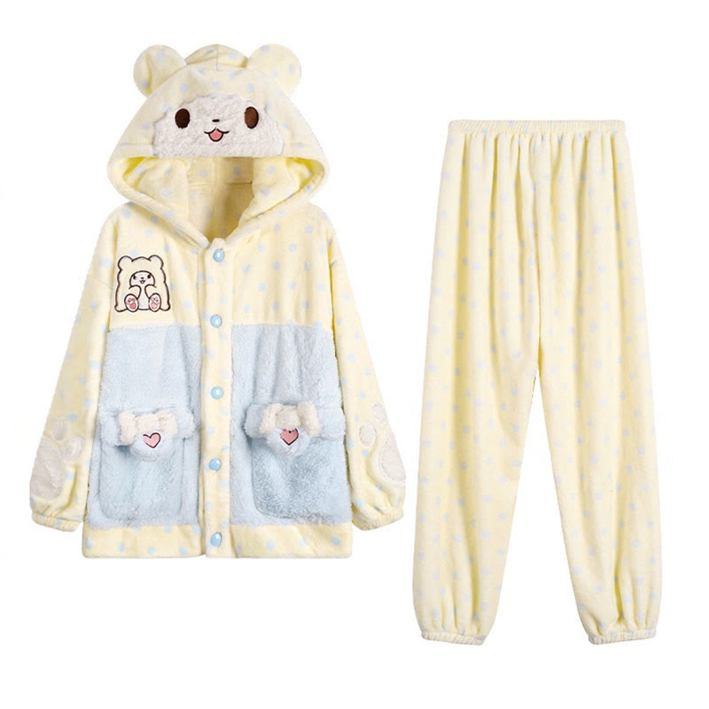 Plüsch-Pyjama mit Kapuze und Bärentasche in Farben -Optik