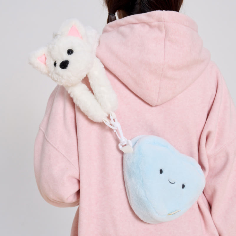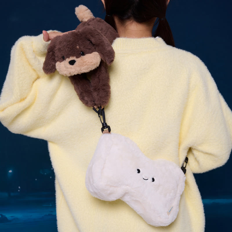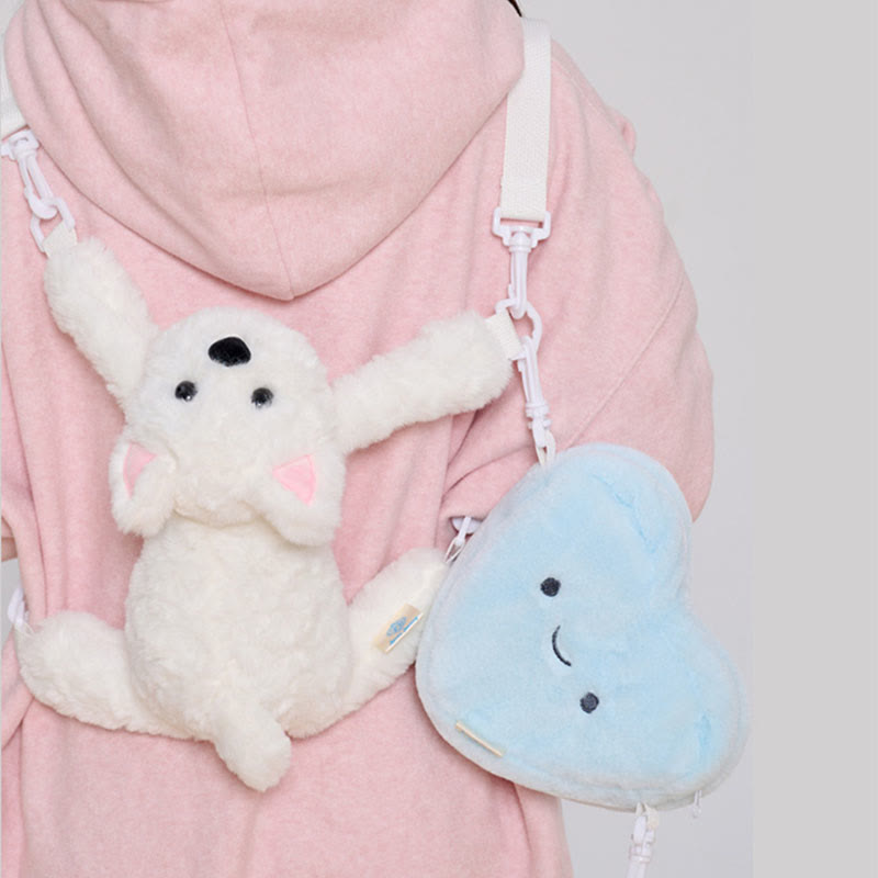 Herzförmige Umhängetasche aus Plüsch mit Welpenmotiv
