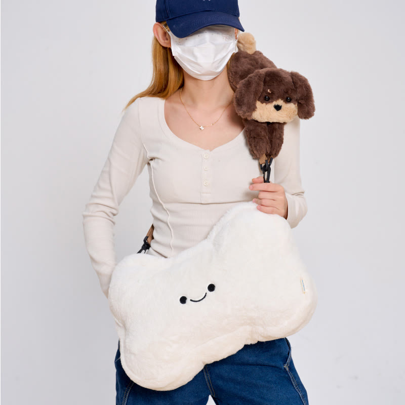 Umhängetasche aus Plüsch mit Welpen-Apfelmotiv