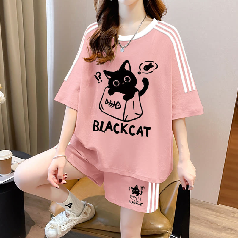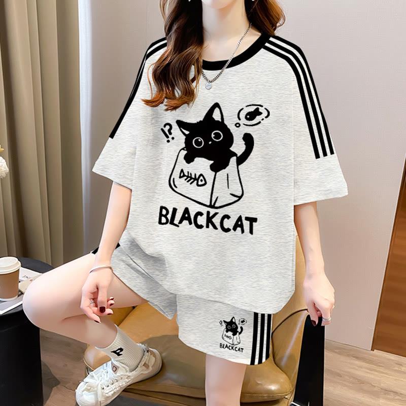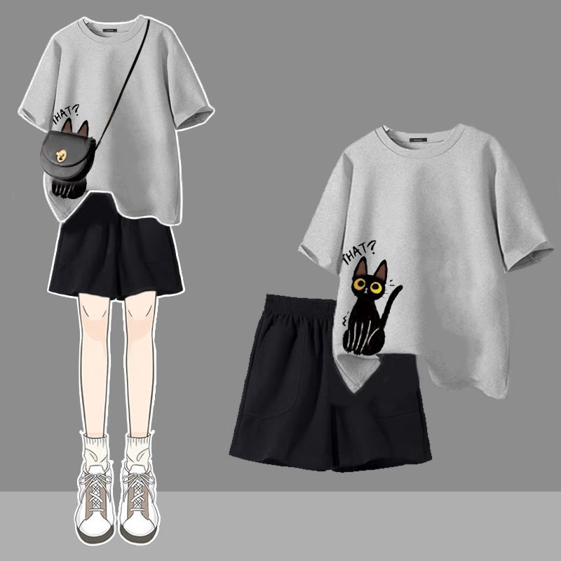 THAT Kitty Print T-Shirt Shorts Zweiteiliges Set