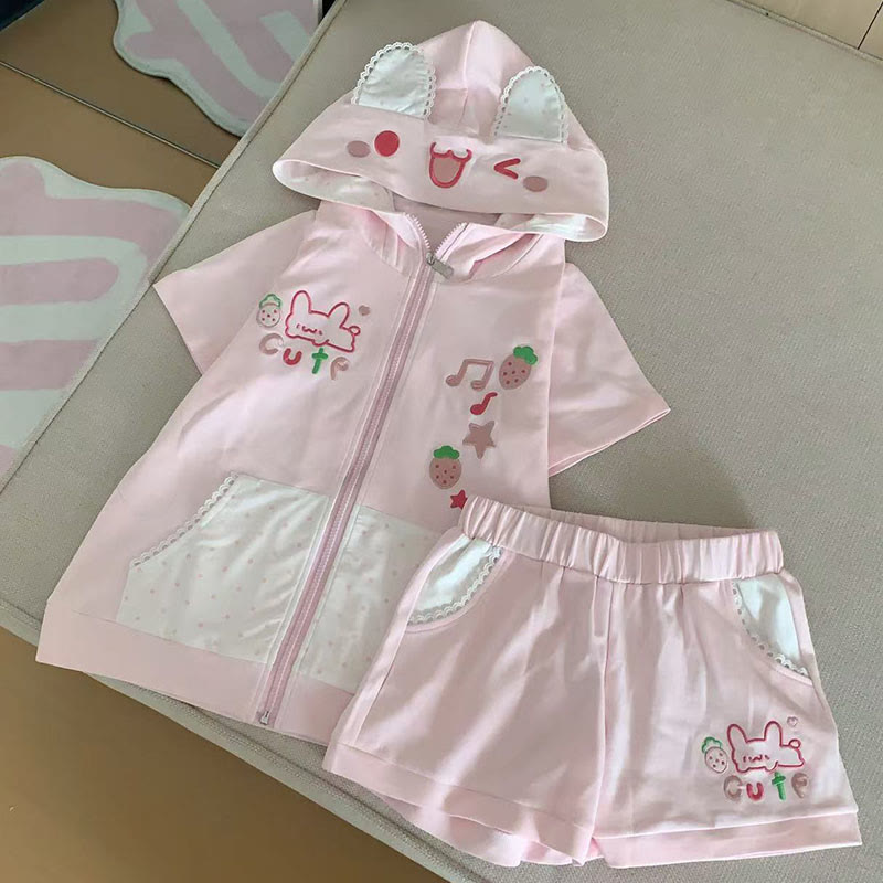 Zweiteiliges Set mit T-Shirt und Shorts mit Hasen-Print