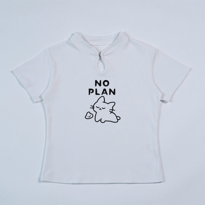 NO PLAN Vintage Schnalle Kitty Brief Druck MODAKAWA T-shirt
