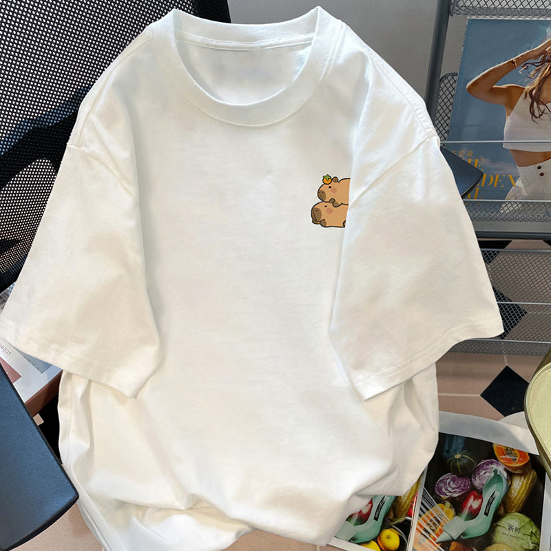 Modakawa – Lässiges T-Shirt mit Capybara-Buchstabendruck