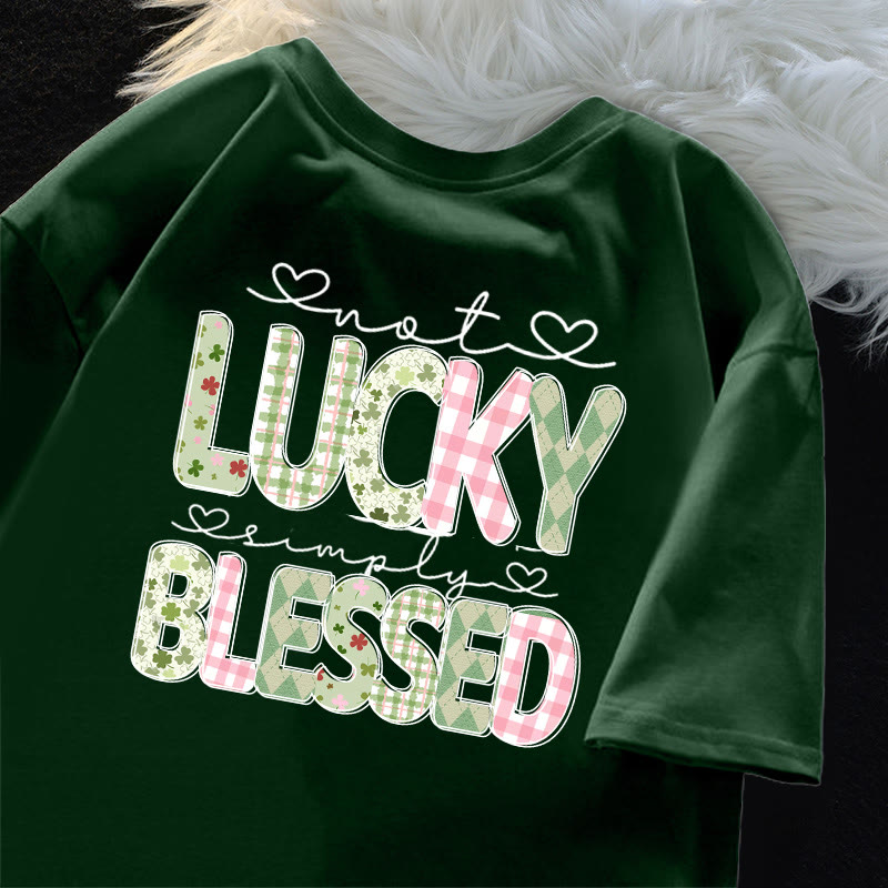 Modakawa Lässiges T-Shirt mit vierblättrigem Kleeblatt-Buchstaben-Herz-Aufdruck