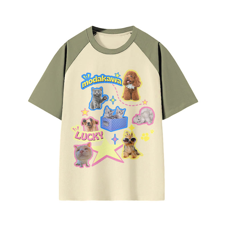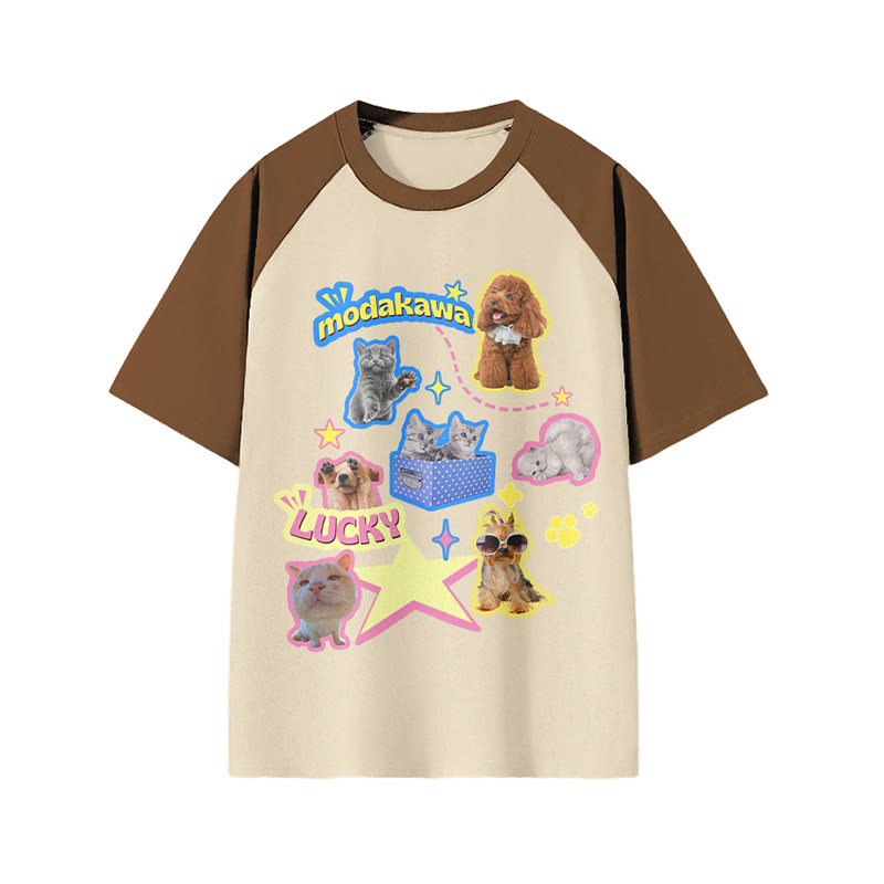 LUCKY Letter Kitty Puppy Print 100 % Baumwolle Modakawa T-Shirt