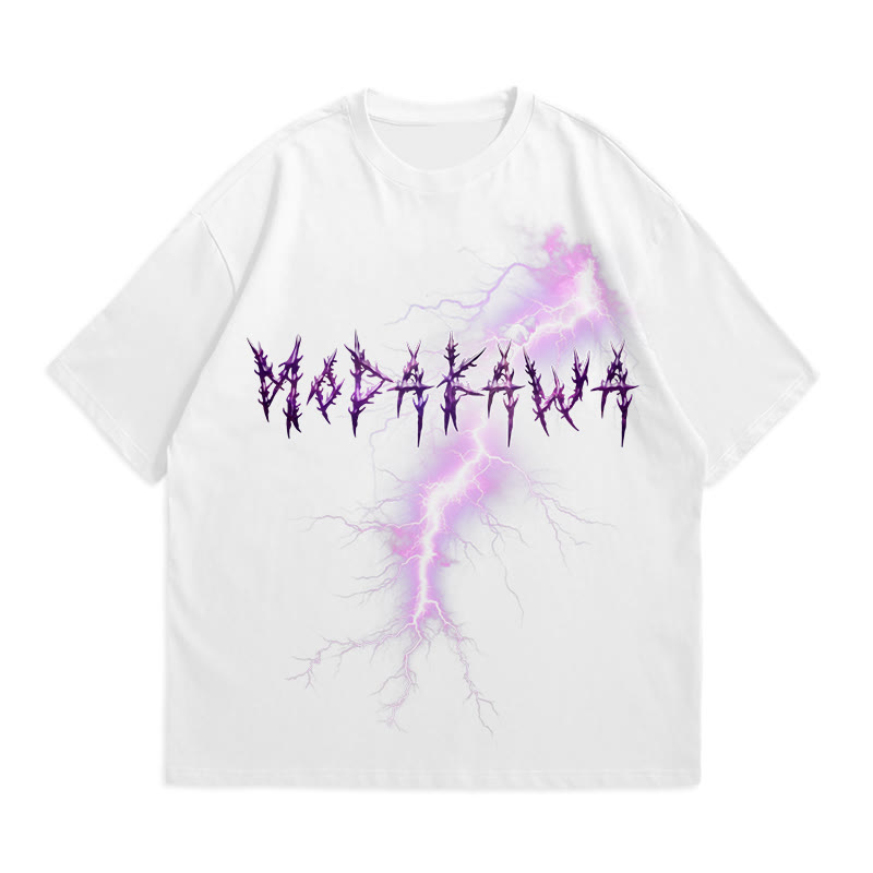 Modakawa-T-Shirt aus 100 % Baumwolle mit Blitz-Buchstabendruck