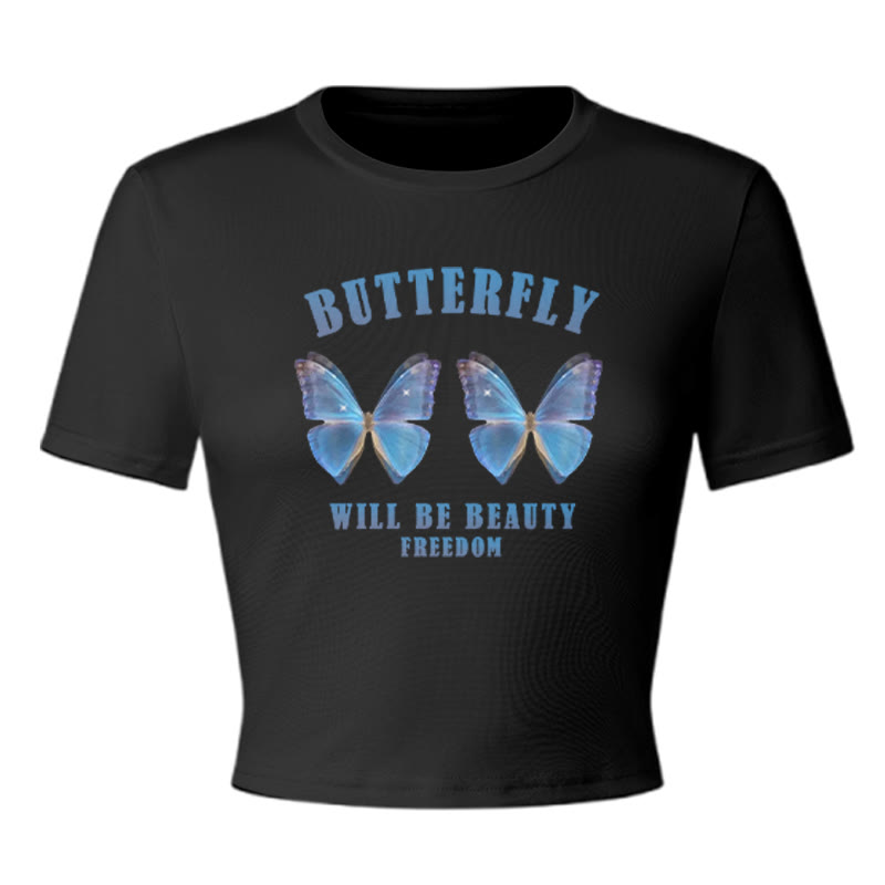 Schmetterling wird Schönheit Freiheit Print Modakawa Crop Top