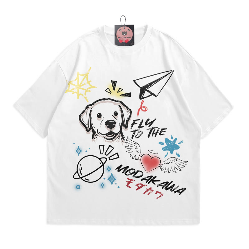 Modakawa-T-Shirt aus 100 % Baumwolle mit Welpen-Fan-Aufdruck