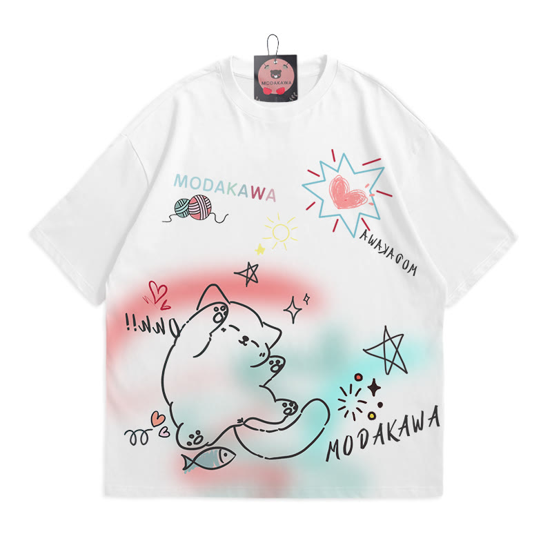 FUELED BY ANIME AND SNACKS – Modakawa-T-Shirt mit Kitty-Print aus 100 % Baumwolle