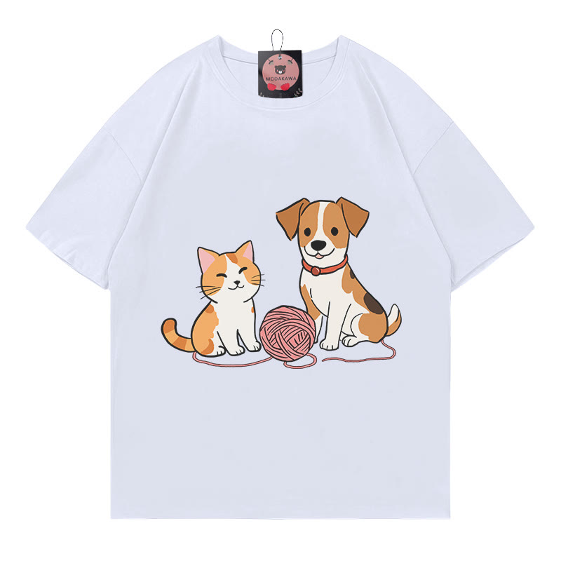Modakawa T-Shirt aus 100 % Baumwolle mit Welpen-Kätzchen-Aufdruck
