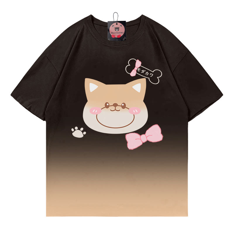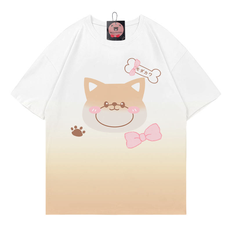 Modakawa T-Shirt mit Shiba Inu Buchstaben-Print und Farbverlauf
