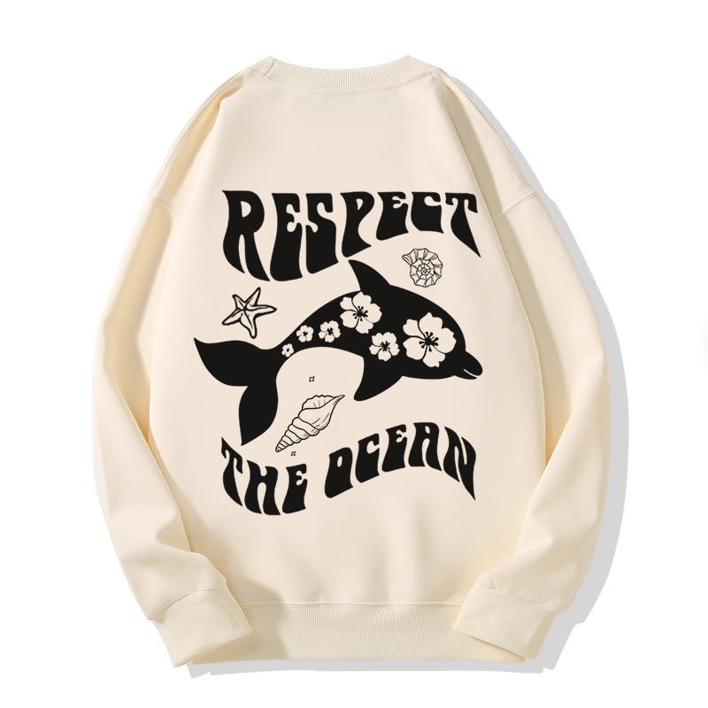 Modakawa Sweatshirt mit Rundkragen und Delfin-Buchstabendruck