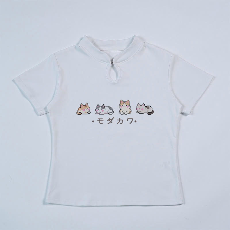 Modakawa-T-Shirt aus 100 % Baumwolle mit Kätzchen-Print