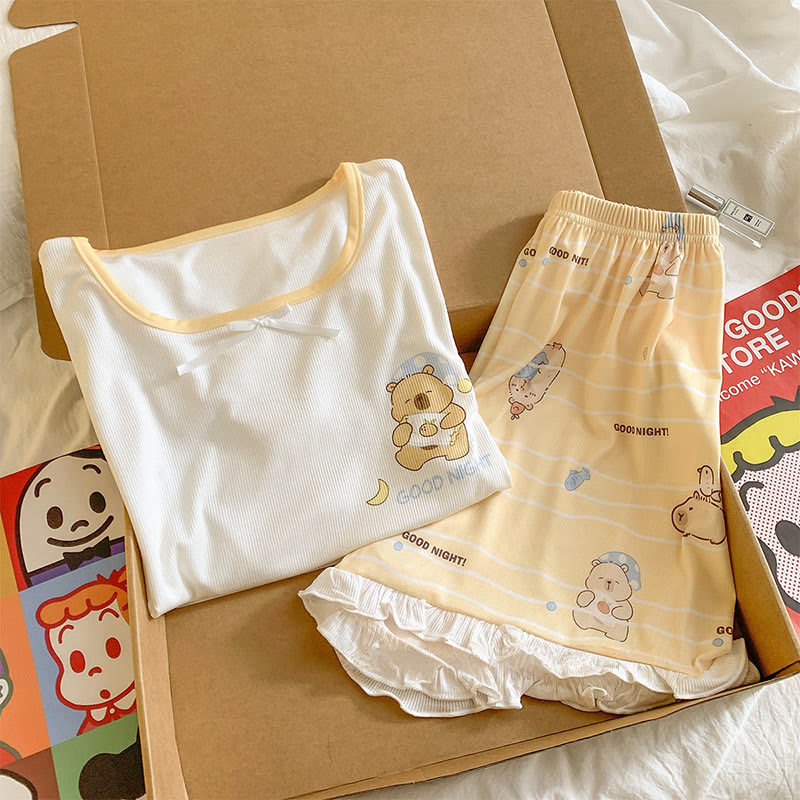 Zweiteiliges Pyjama-Set mit Kitty-Karomuster