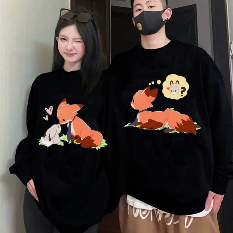 Modakawa Freundin Freund Cartoon Fuchs Hase Druck Lose Hoodie