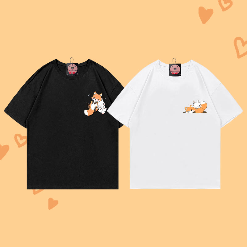 Girlfriend Boyfriend Fox Print 100 % Baumwolle Modakawa T-Shirt