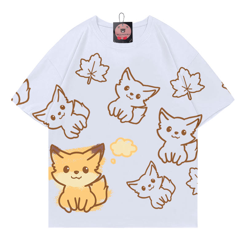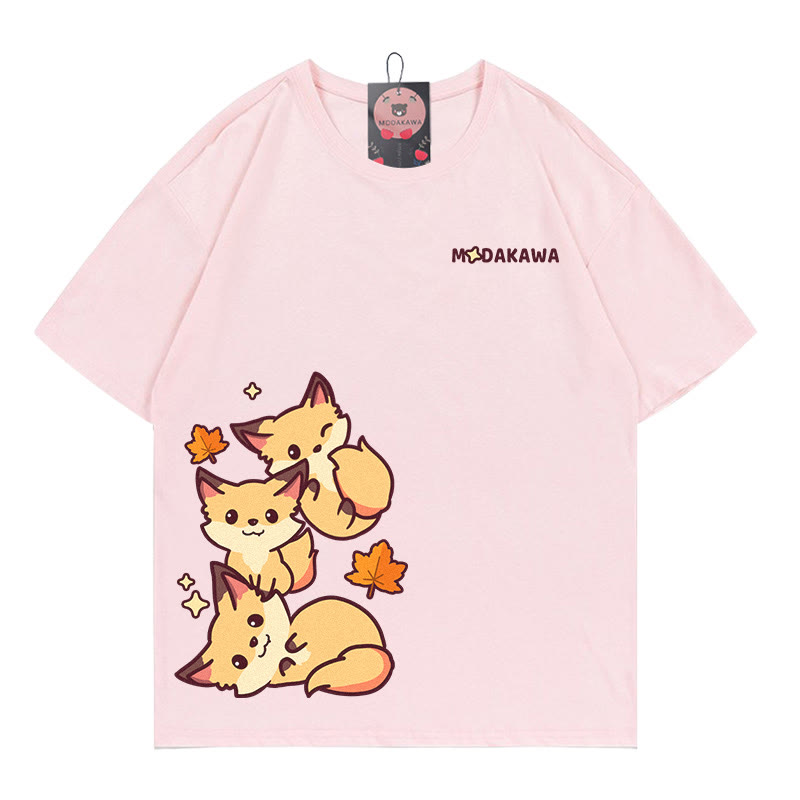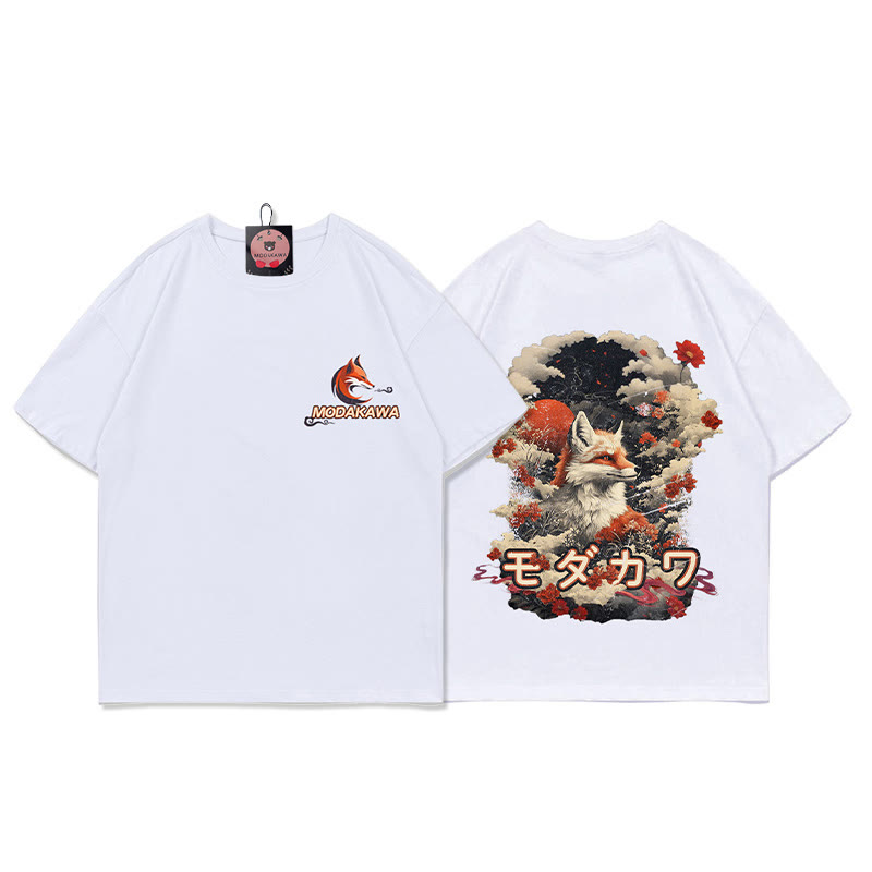 Modakawa-T-Shirt aus 100 % Baumwolle mit Fuchs-Buchstabendruck