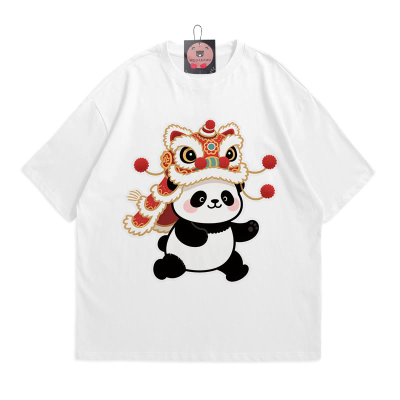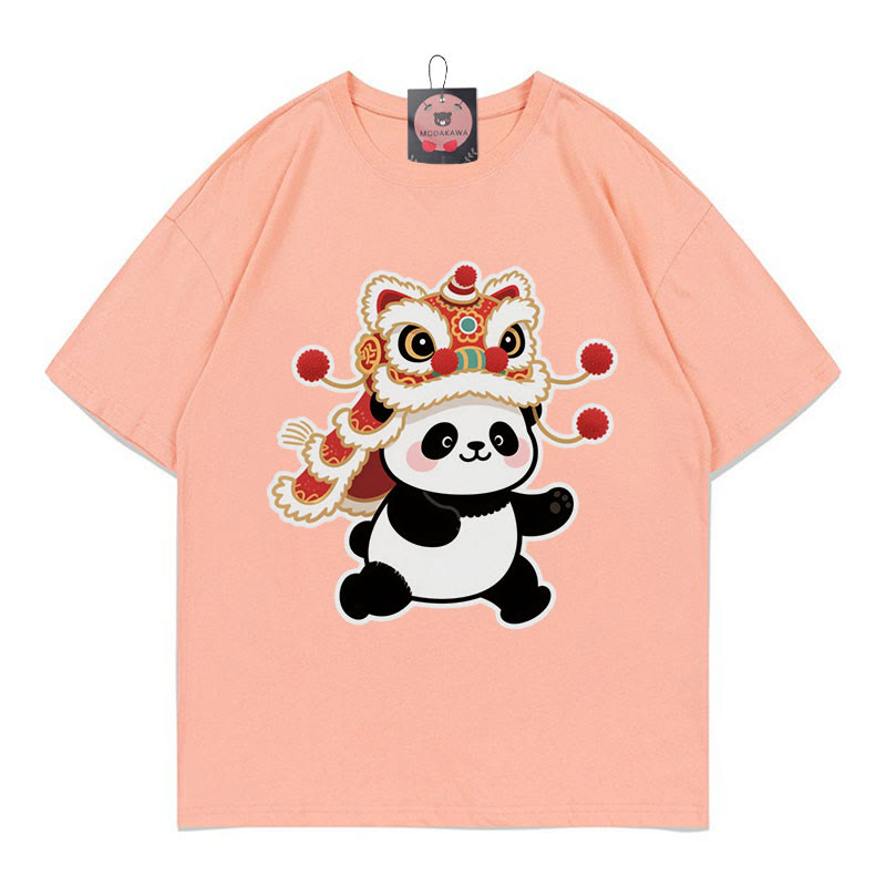 T-Shirt mit Löwentanz-Panda-Print aus 100 % Baumwolle von Modakawa