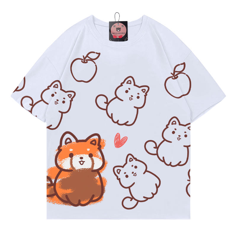 Modakawa T-Shirt aus 100 % Baumwolle mit rotierendem Roten Panda-Fuchs-Aufdruck