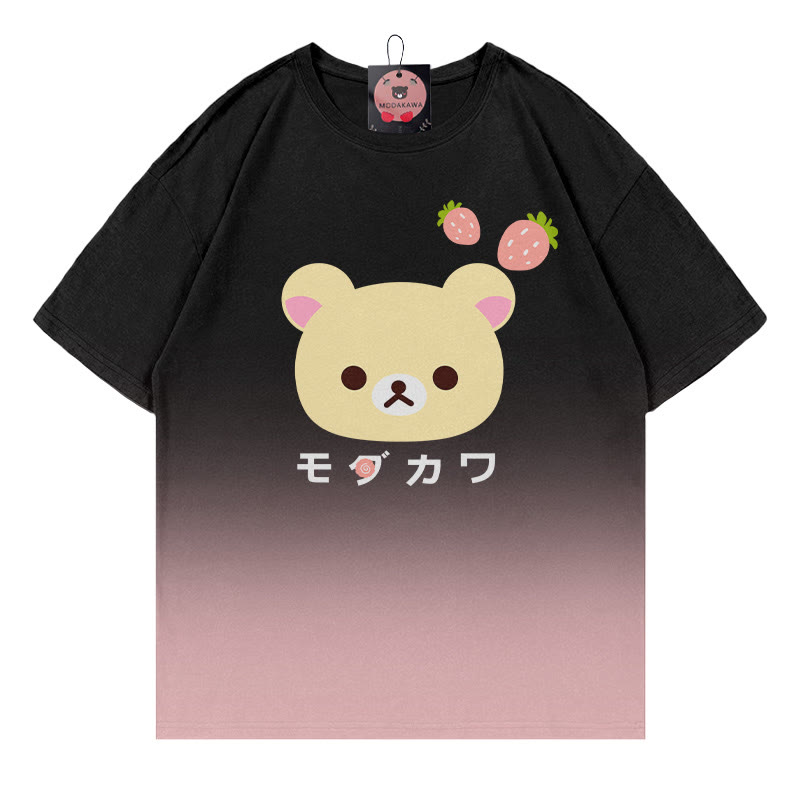 Modakawa T-Shirt mit Farbverlauf und Bären-Erdbeer-Print