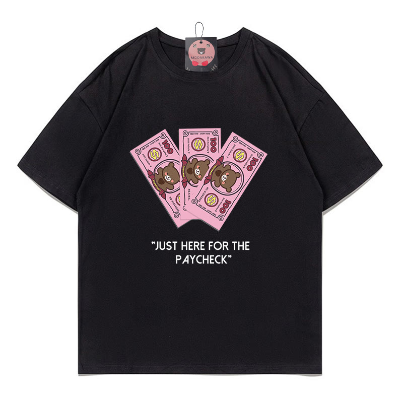 JUST HIER FOR THE PAYCHECK Bären-Dollar-Aufdruck 100 % Baumwolle Modakawa T-Shirt