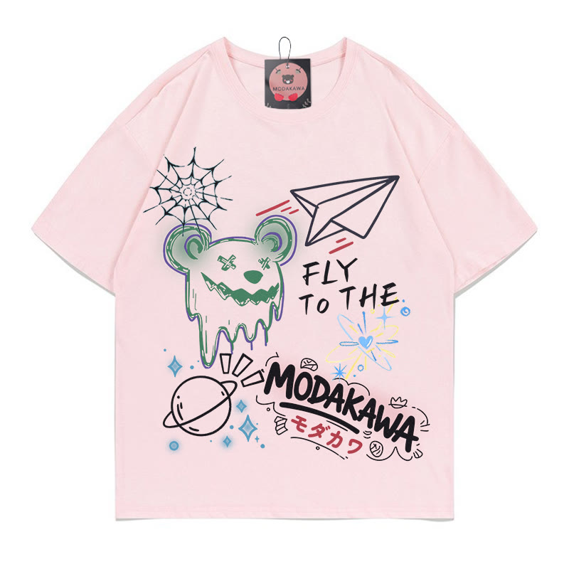 Modakawa-T-Shirt aus 100 % Baumwolle mit Bear Planet-Buchstabendruck