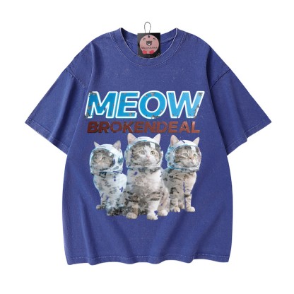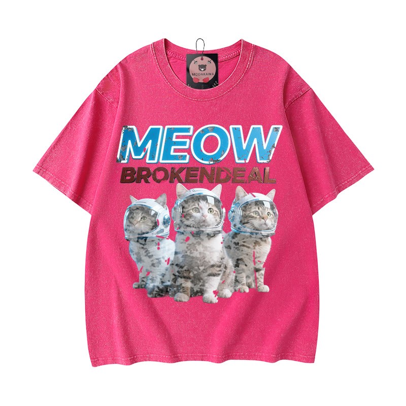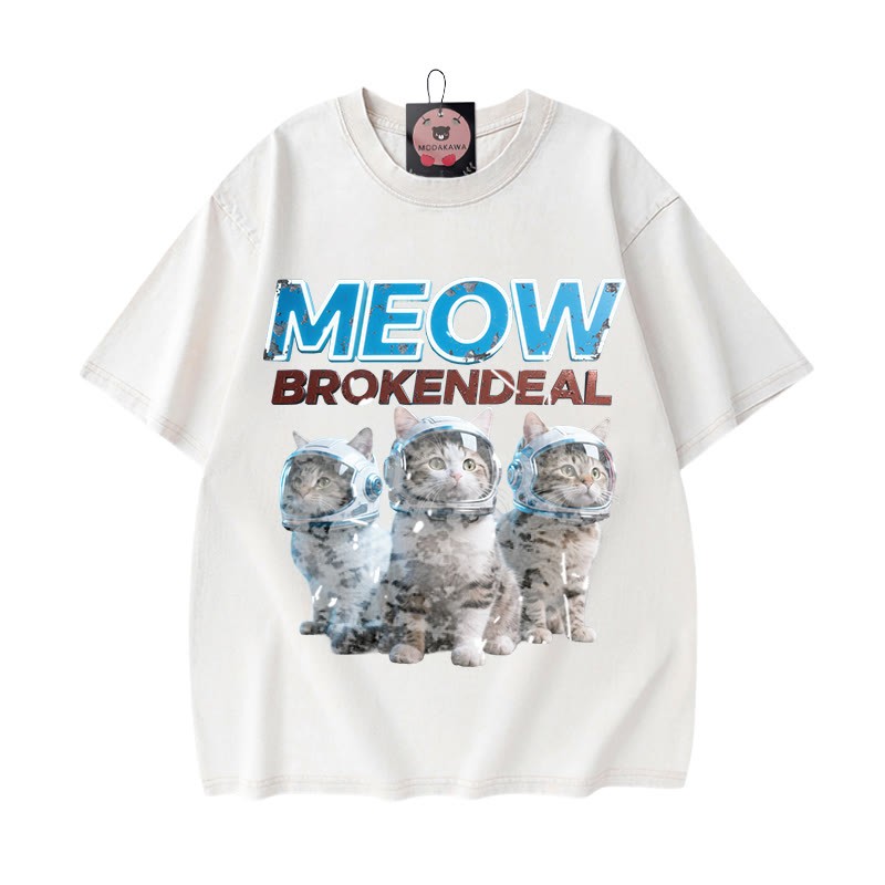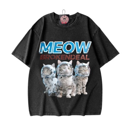 MEOW BROKENDEAL Kitty Print Vintage gewaschen 100 % Baumwolle Modakawa T-Shirt