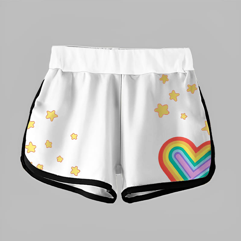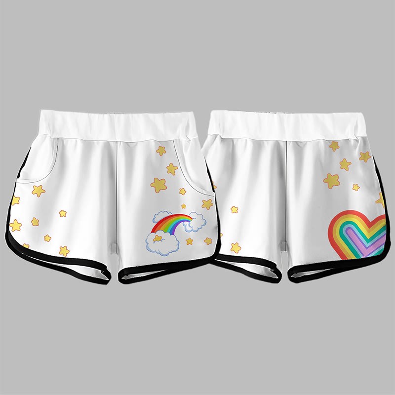 Modakawa Freizeitshorts mit Regenbogen-Stern- und Herz-Print