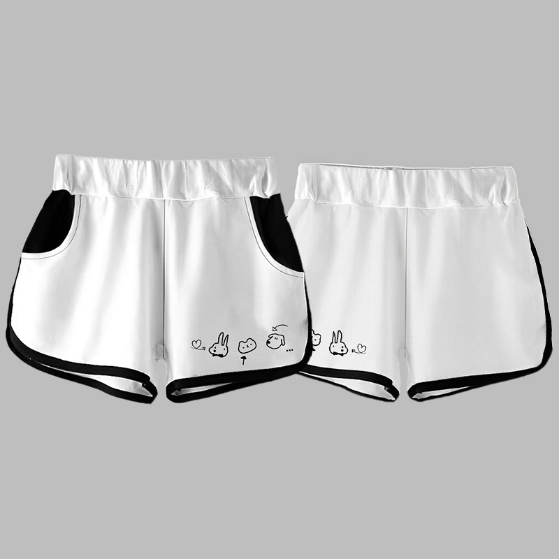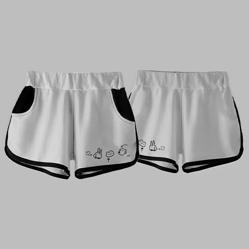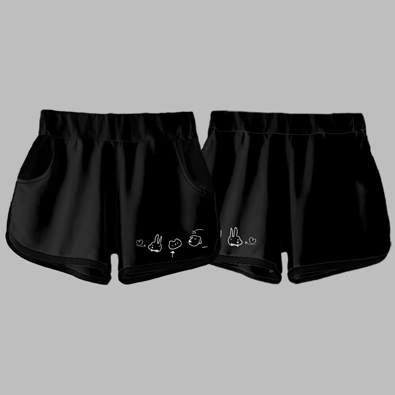 Modakawa Lässige Shorts mit Hasenwelpen-Print
