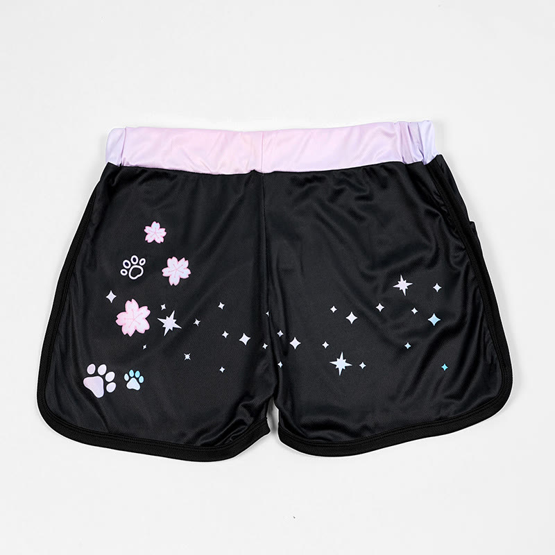 Modakawa – Lässige Shorts mit Sakura-Stern-Pfoten-Print und Farbverlauf