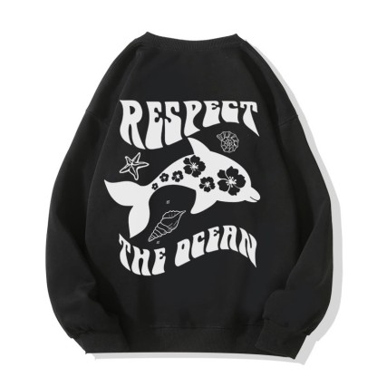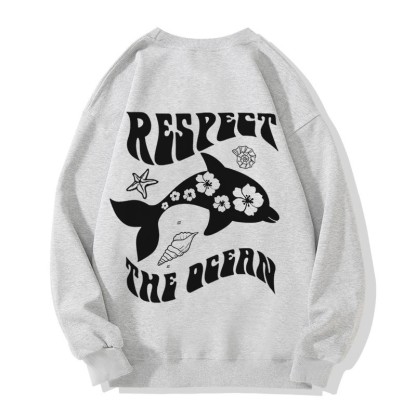 Modakawa Sweatshirt mit Rundkragen und Delfin-Buchstabendruck