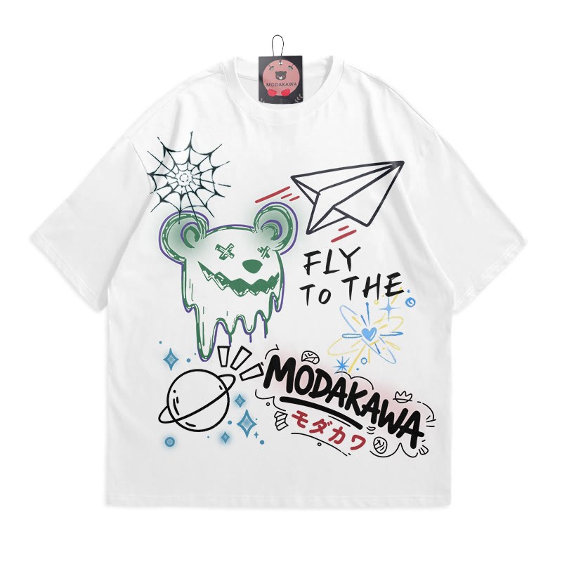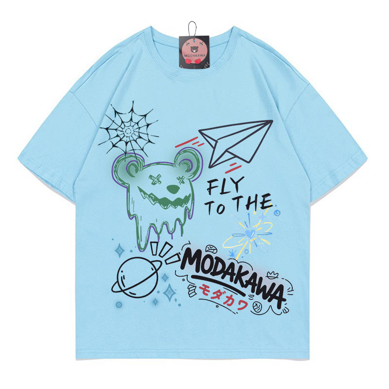 Modakawa-T-Shirt aus 100 % Baumwolle mit Bear Planet-Buchstabendruck