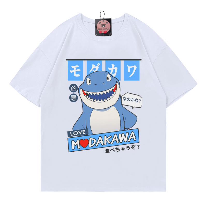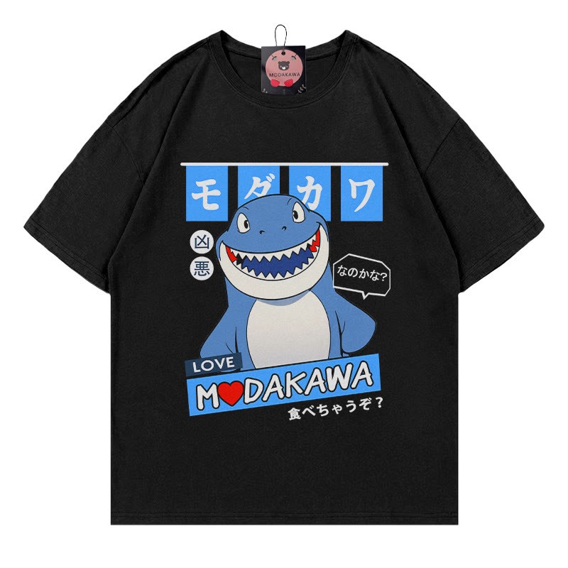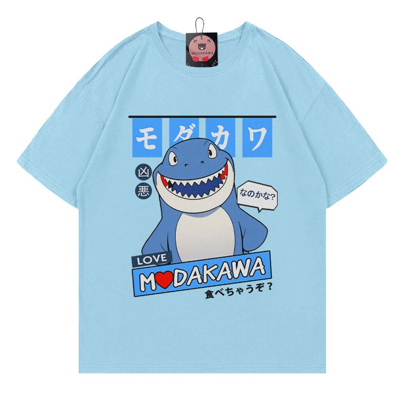 Modakawa-T-Shirt aus 100 % Baumwolle mit Hai-Buchstabendruck
