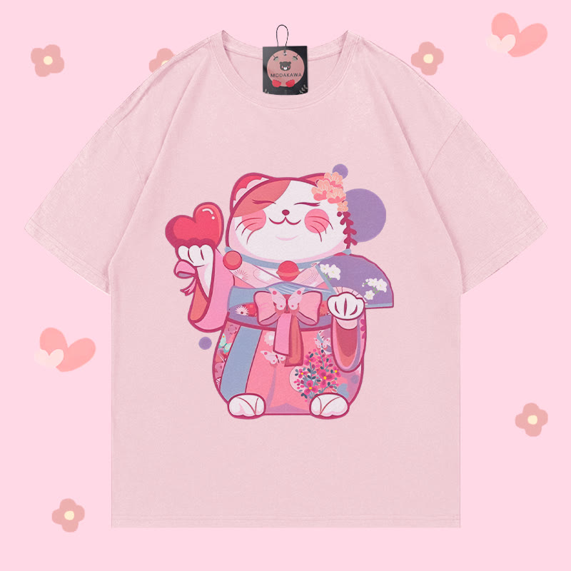 Modakawa-T-Shirt aus 100 % Baumwolle mit Katzendruck