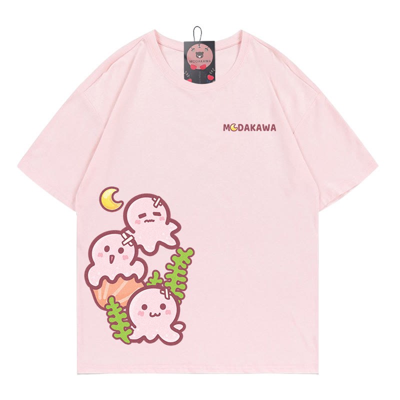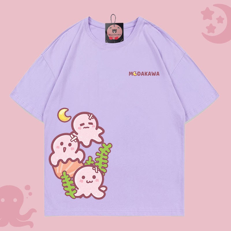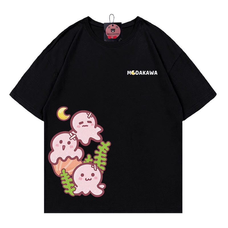 Modakawa-T-Shirt aus 100 % Baumwolle mit Oktopus-Buchstabendruck