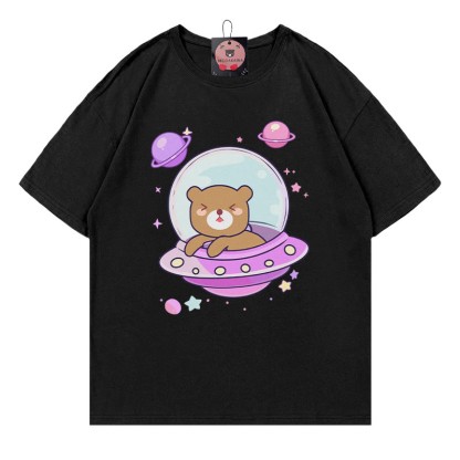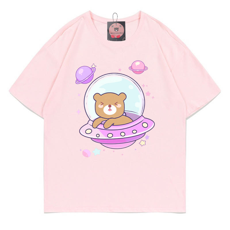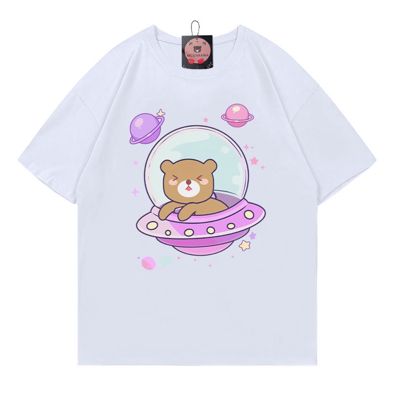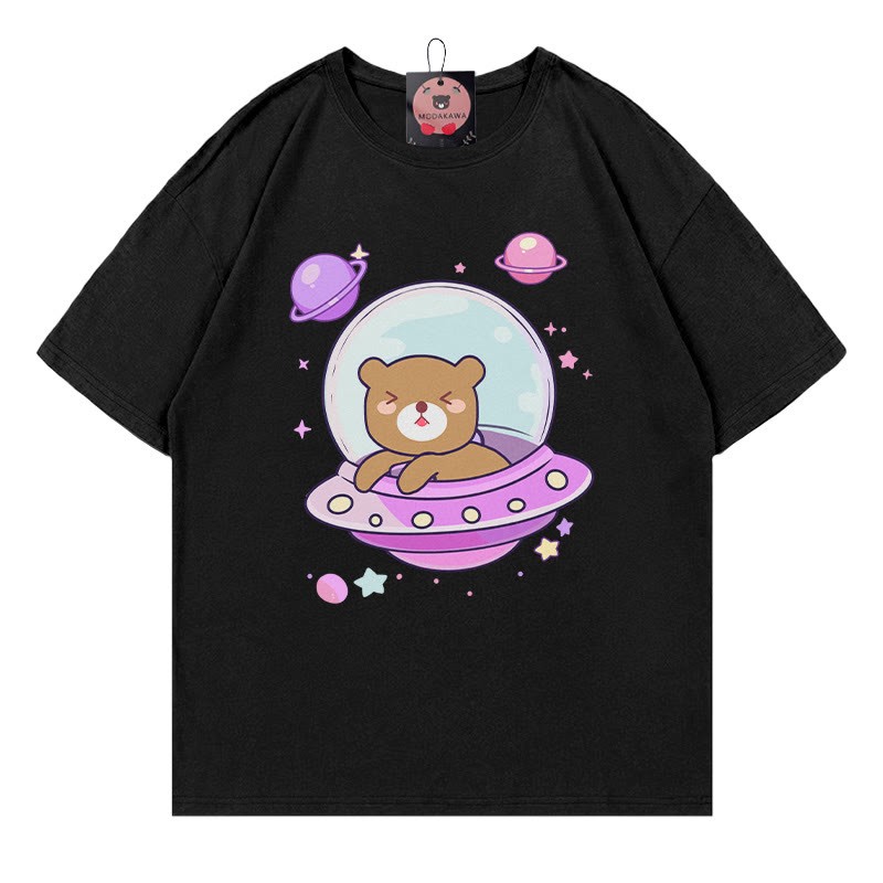 Modakawa-T-Shirt aus 100 % Baumwolle mit Raumschiff-Bären-Print