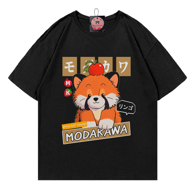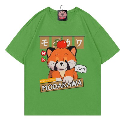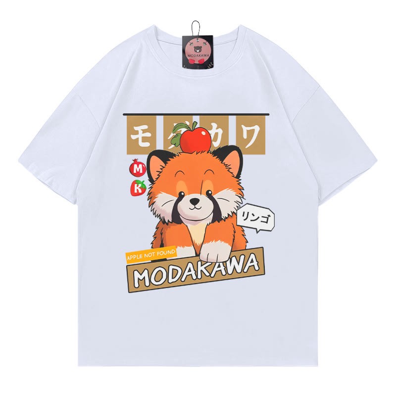 Modakawa-T-Shirt aus 100 % Baumwolle mit rotem Panda-Buchstabendruck