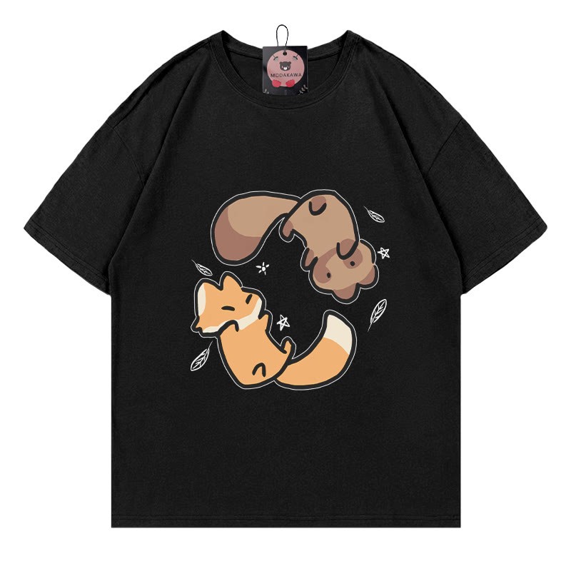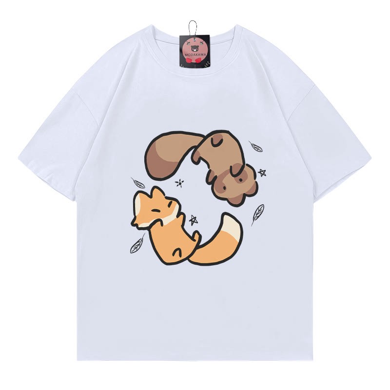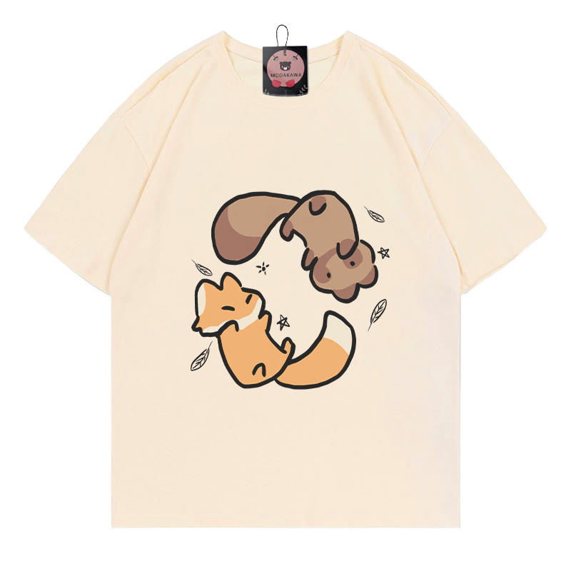 Modakawa T-Shirt aus 100 % Baumwolle mit rotierendem Roten Panda-Fuchs-Aufdruck