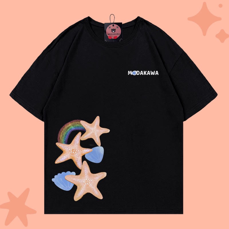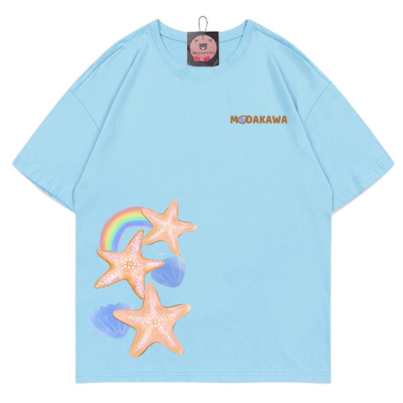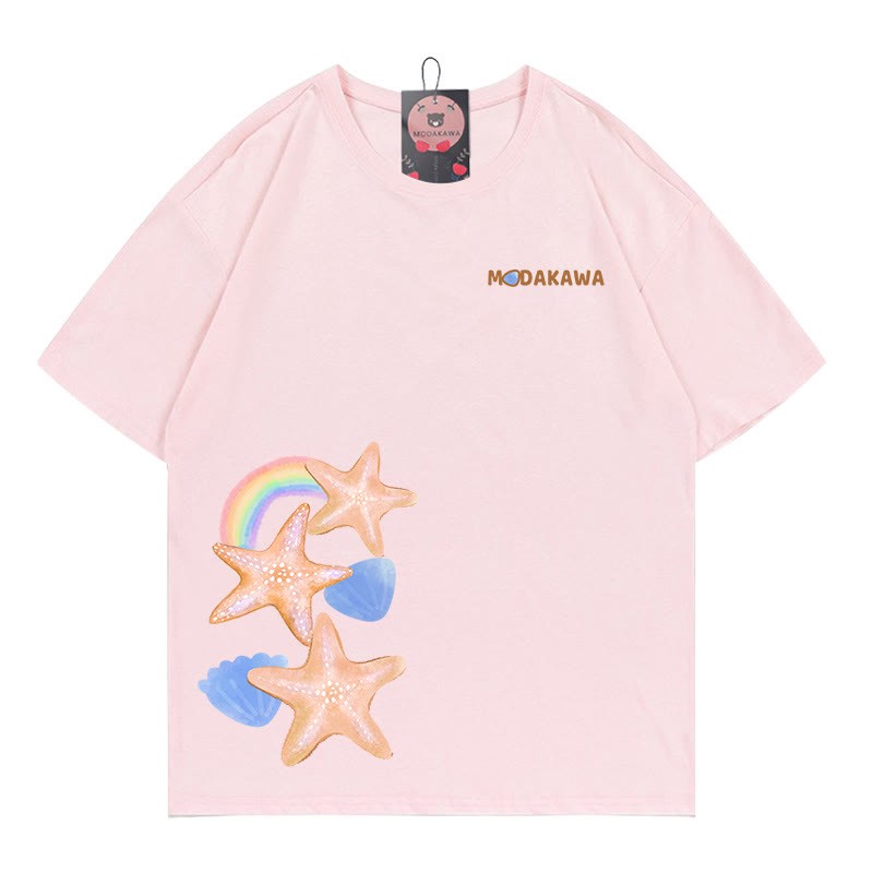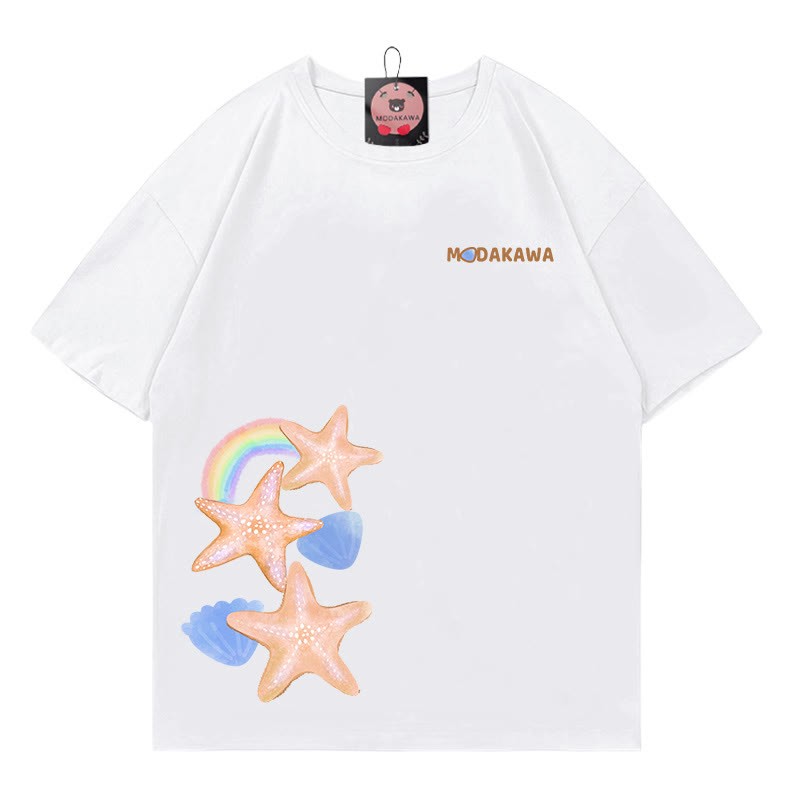 Modakawa-T-Shirt aus 100 % Baumwolle mit Seestern-Buchstabendruck