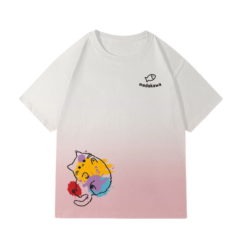 Modakawa T-Shirt mit Farbverlauf und Kätzchen-Print