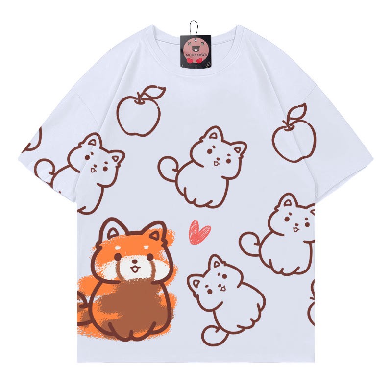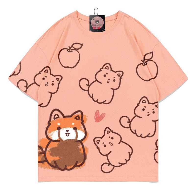 Modakawa T-Shirt mit rotem Panda-Print