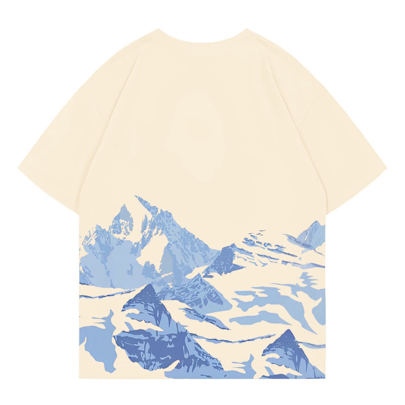 Modakawa T-Shirt mit verschneitem Berg-Print