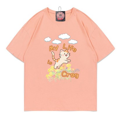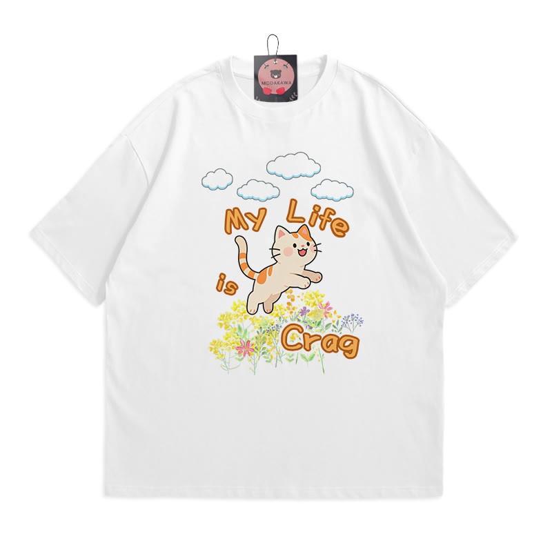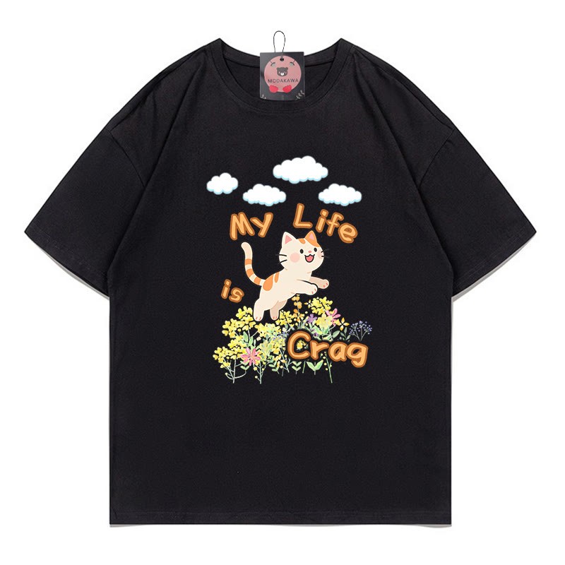 MY LIFE IS CRAG Kitty Print 100 % Baumwolle Modakawa T-Shirt