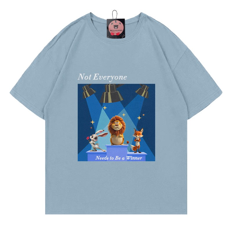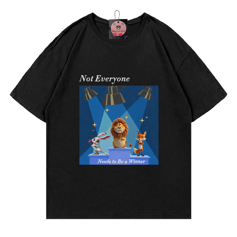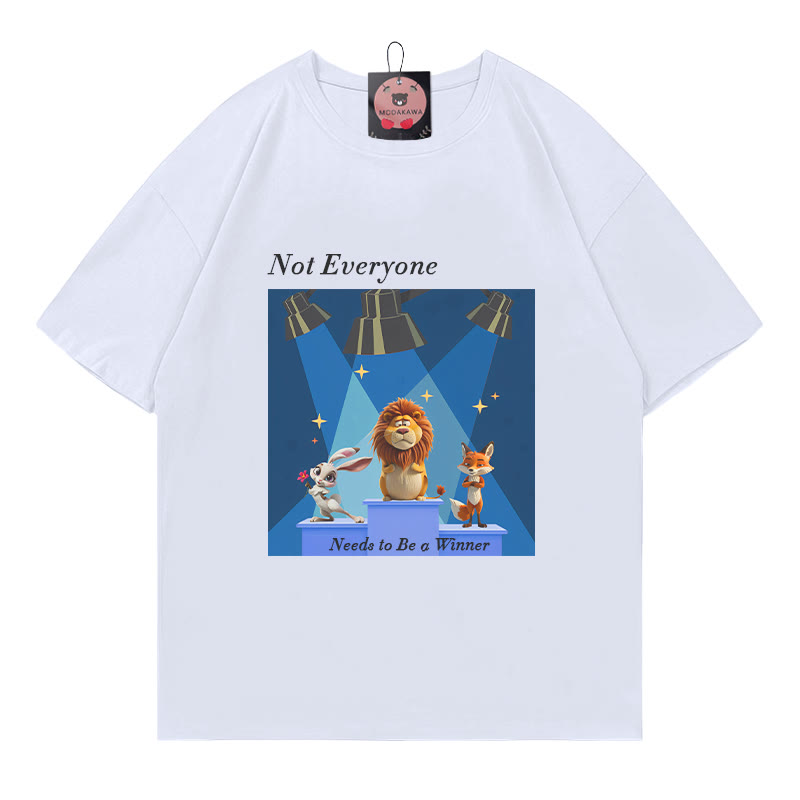 NICHT JEDER MUSS EIN GEWINNER SEIN. T-Shirt mit Löwe-, Hasen- und Fuchs-Print aus 100 % Baumwolle von Modakawa.