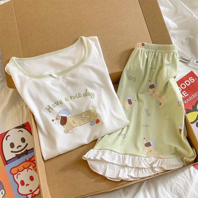 Zweiteiliges Pyjama-Set mit Welpen-Print